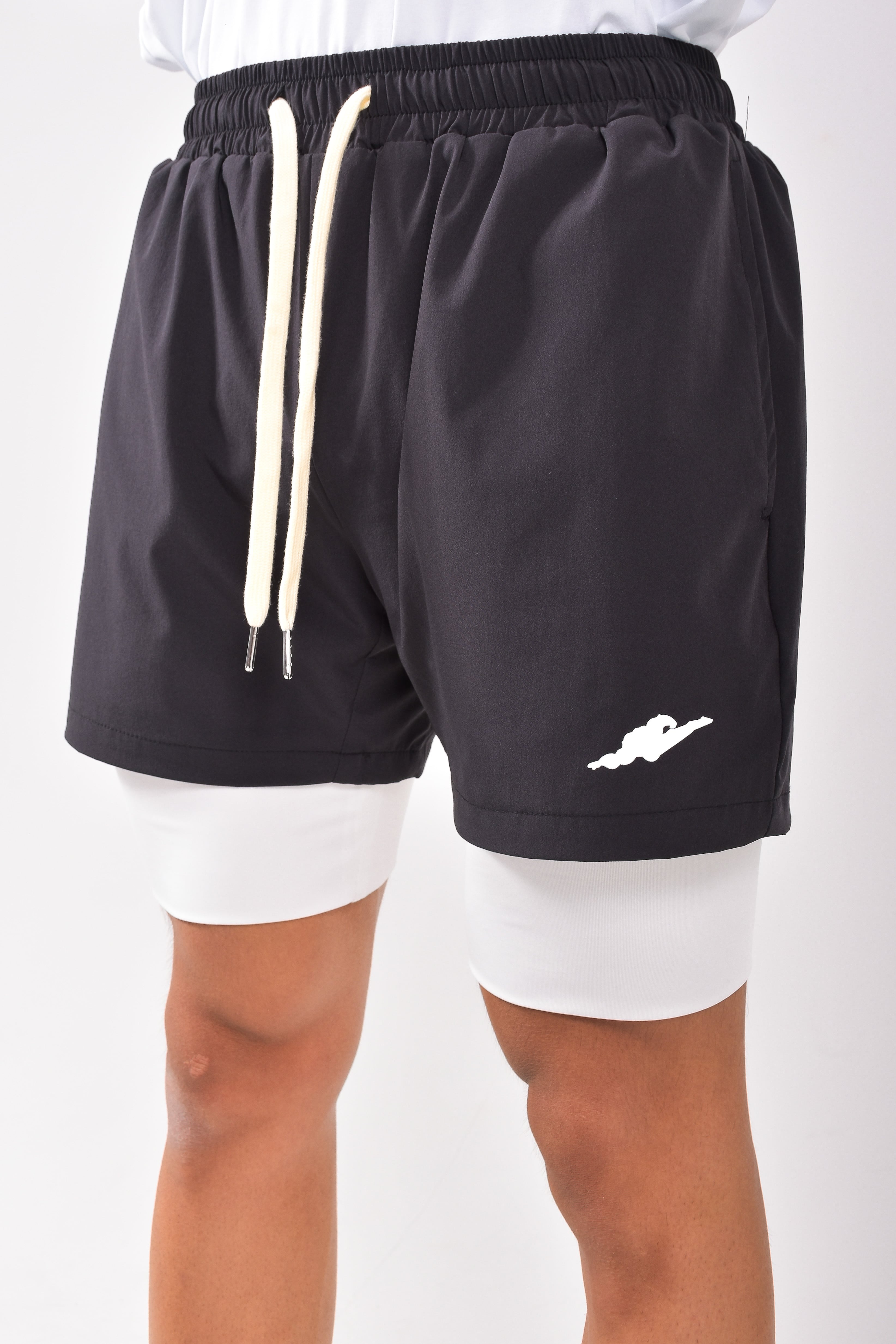 スパッツ付きナイロンショーツ ブラック